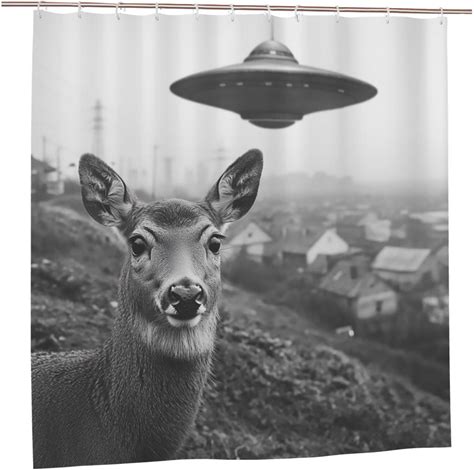 WYLJY Funny Deer UFO Shower Curtain, Alien Bath Curtain 72"X72" For Bathroom Bathtubs Decor With Hooks