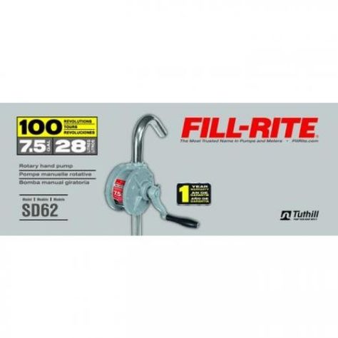 Fill Rite SD62 Rotary Hand Pump 7.5 GAL 28 Liters Per 100 Revolutions Whs23