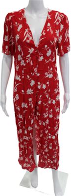 Zara Woman Women Maxi Shirt Dress Red V-Neck Floral Button Short