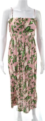 Zara Womens Cotton Tropical Print Smocked Maxi Dress Multicolor Size