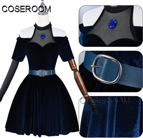 Anime Alien Stage Mizi Cosplay Costume Wig Dark Blue Dress Pink Blue Long Hair Gloves Stockings Belt