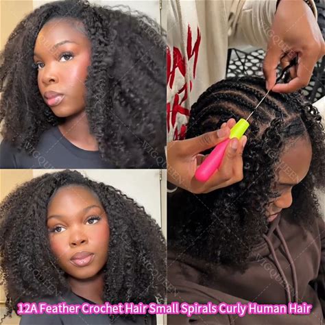 12A Kinky Curly Feather Crochet Human Hair Knotless Pre-Separated Crochet Hair Extension Virgin Hair