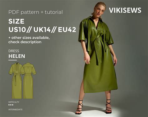 Colette Dress Digital Pattern Pdf Sewing Pattern With Tutorial Size US 10 UK 14 EU 42