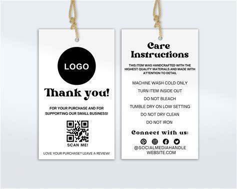 Editable Clothing Hang Tag Template, Customizable Clothing Tag, Business Tag, Printable Tshirt Care Tags, Washing Instructions Card