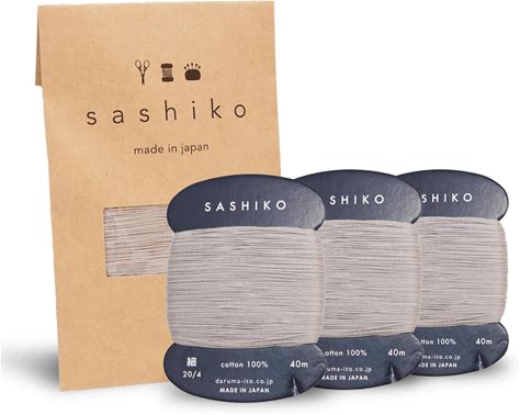 DARUMA Sashiko Thread Card Rolls Set Of 3 (43.7 Yards X3) - Sewing & Embroidery, Includes Instruction Manual And Gift Packaging (Thin, White Grey)