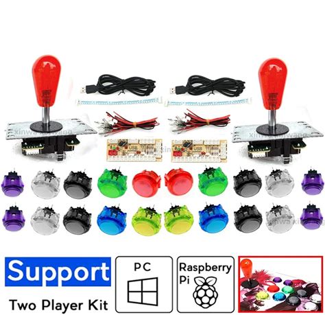 2 Player Arcade Kit Copy Sanwa Joystick Transparent Push Button Zero Delay Usb Controller Encoder Pc