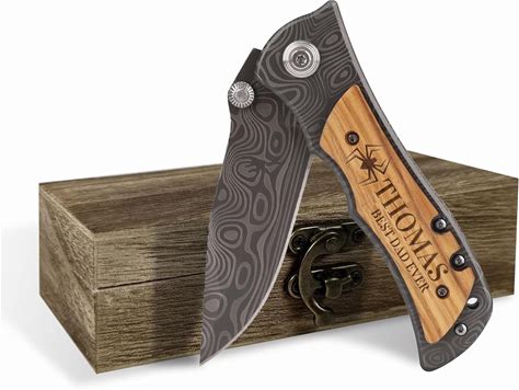 Custom Pocket Knife, Personalized Engraved Wood Handle Folding Knife, Gifts For Men - 25 Icons, 16 Font, Etched Knives For Camping, Hunting,
