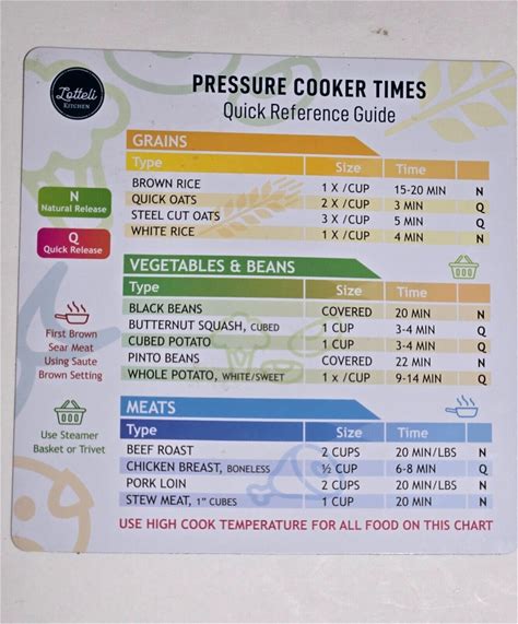 Pressure Cooker Time Chart