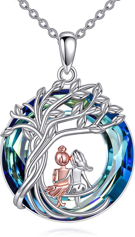 Vadmans Tree Of Life Necklace Sterling Silver Sister Pendant Blue Crystal Jewelry Gift For Women