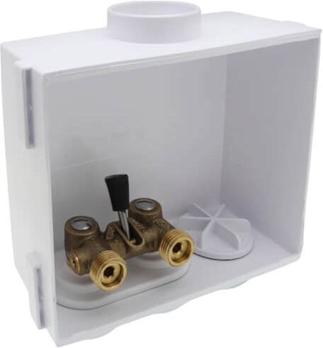EFIELD Washing Machine Outlet Box With Center Drain With Brass 1/4 Turn Valves Installed, 1/2" Pex-A F1960 Expansion Fitting Connection X 3/4" MHT Connection, White, With Copper Arrestor