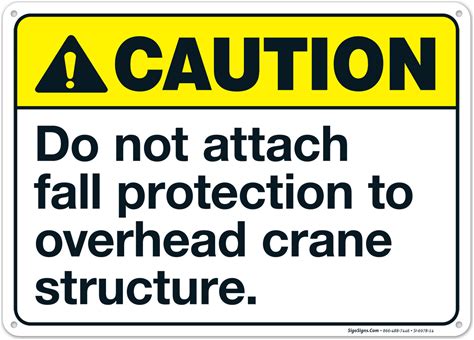 Do Not Attach Fall Protection To Overhead Crane Structure Sign, ANSI Caution Sign | ANSI | 12 X 18 | .063 3m Diamond Grade | Pre-Drilled