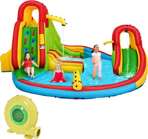 Deluxe Inflatable Water Slide Park & Splash Pool With Tunnel - Heavy-Duty For Outdoor Fun - Climbing