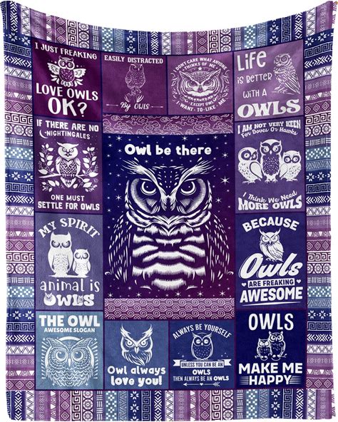 Homieblanket Owl Blanket For Boys Girls, Cute Owl Themed Design Printed Purple Throw Blankets For Kids Lap, Chair Sofa, Warm Soft Cozy Blanket, 40"X