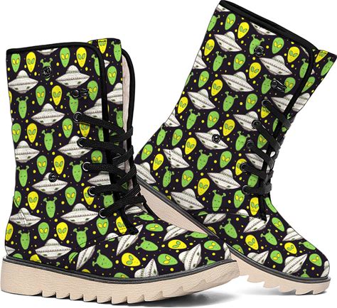 Green Alien UFO Space Print Winter Boots