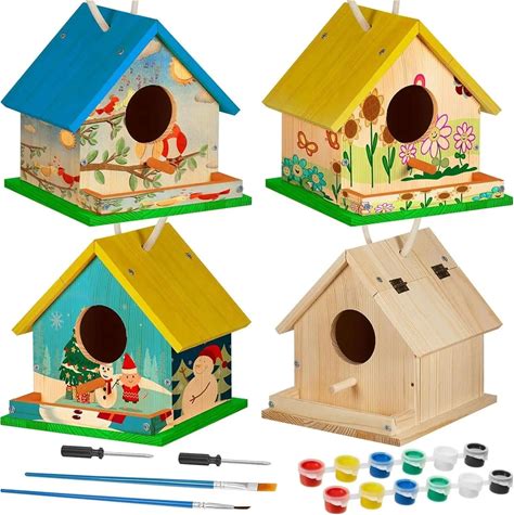 12 Sets DIY Birdhouse Kit With Paints & Brushes, Unfinished Wooden Craft For Kids Classroom Activity