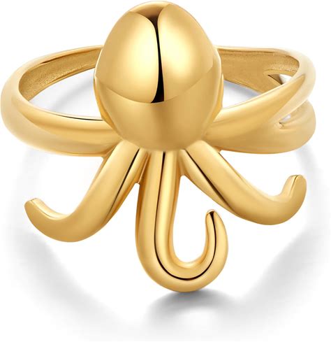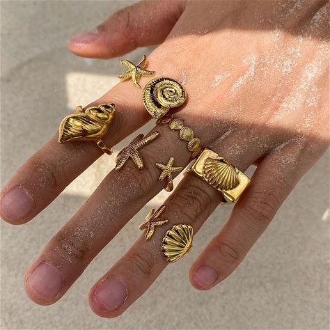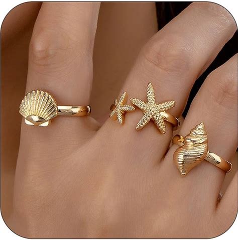 WOWORAMA Gold Conch Shell Starfish Rings For Women Chunky Adjustable Open Rings Gold Ocean Statement Rings Seashell Sea Star Rings Stackable Band